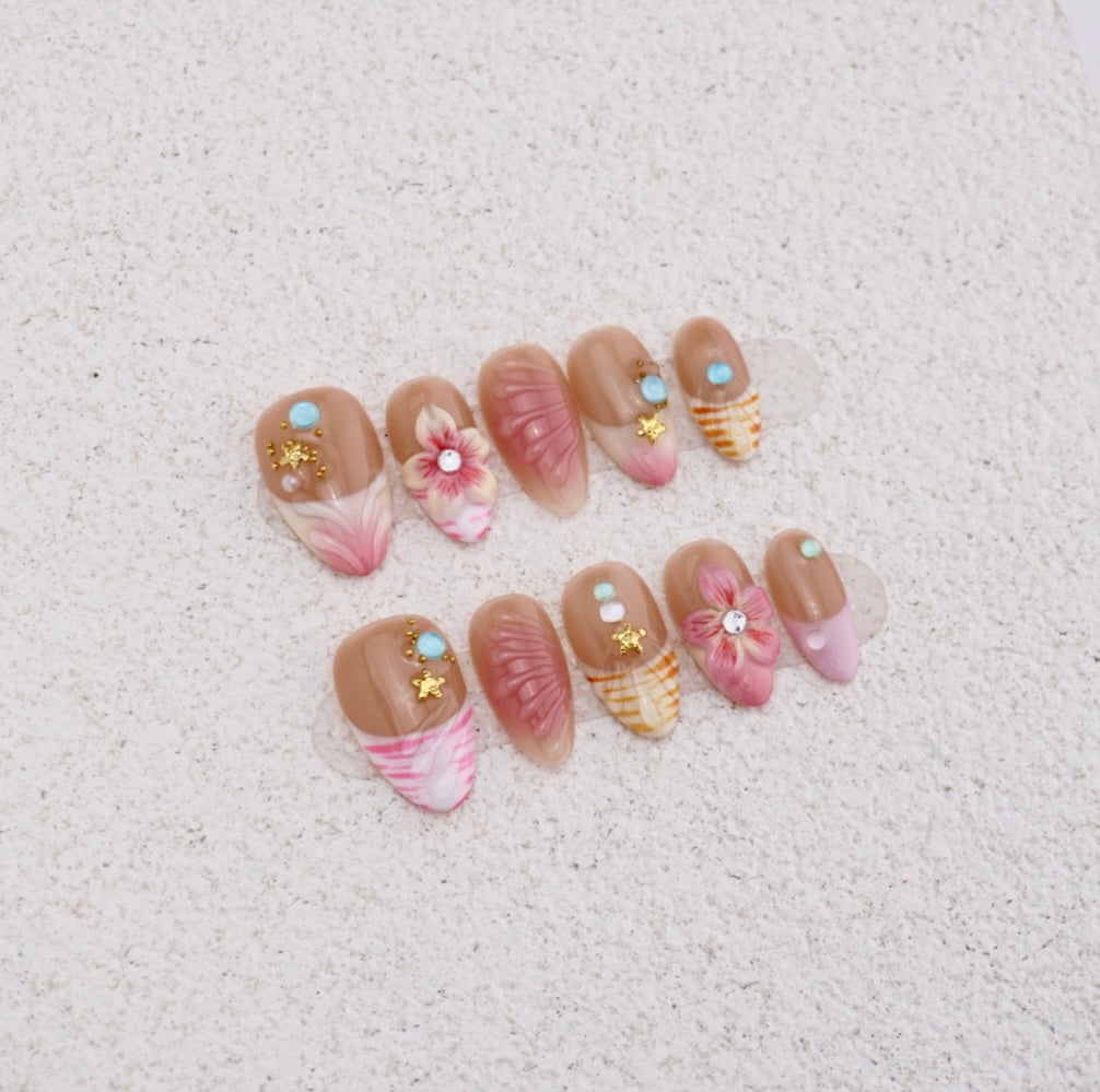 Dive into a dreamy coastal reverie with our Shell Bloom Press-On Nails —